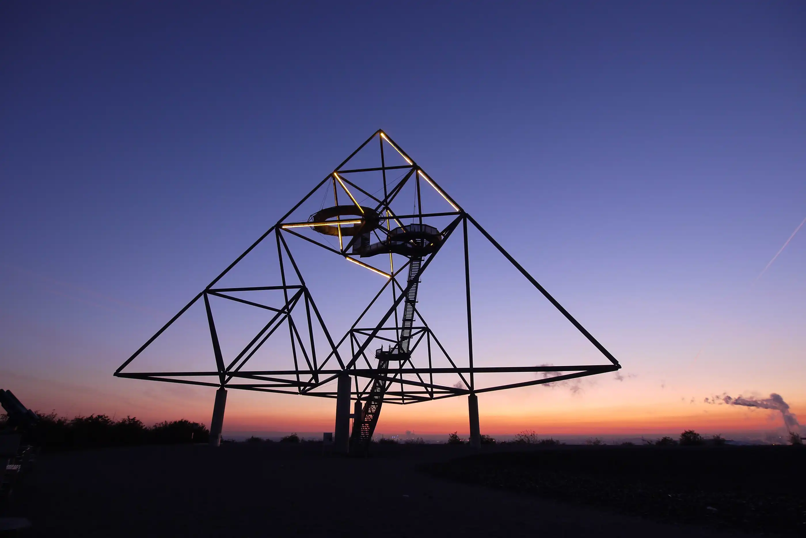 | Tetraeder Halde Beckstr. Bottrop | Quelle: OLFF APPOLDwww.olffappold.com, Ruhr Tourismus GmbH · Lizenz: CC-BY-SA | Tetraeder Halde Beckstr. Bottrop: <p>Begehbarer Aussichtspunkt mit moderner Stahlkonstruktion in Bottrop bei Sonnenuntergang.</p> |