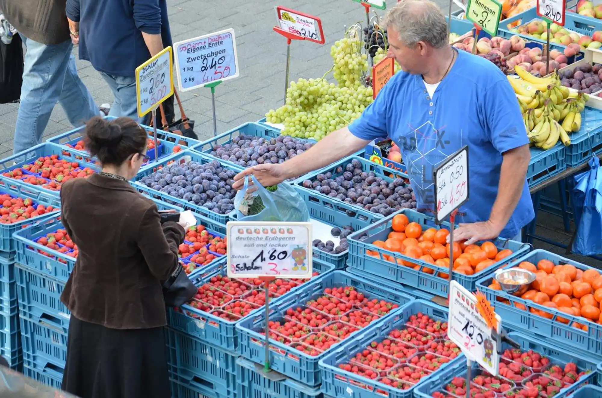 | Wochenmarkt, Bottrop | Quelle: Stadt Bottrop · Lizenz: CC-BY-SA | Wochenmarkt, Bottrop: |