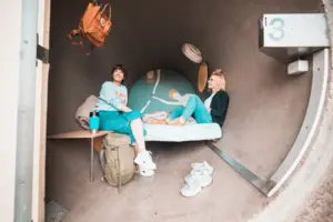 | Alpincenter, Bottrop | Quelle: Ruhr Tourismus GmbH, OLFF APPOLD · Lizenz: CC-BY-SA | Alpincenter, Bottrop: <p>Skifahrer in buntem Anzug sausen auf Indoor-Schneepiste mit Holzdecke und Beleuchtung.</p> |
