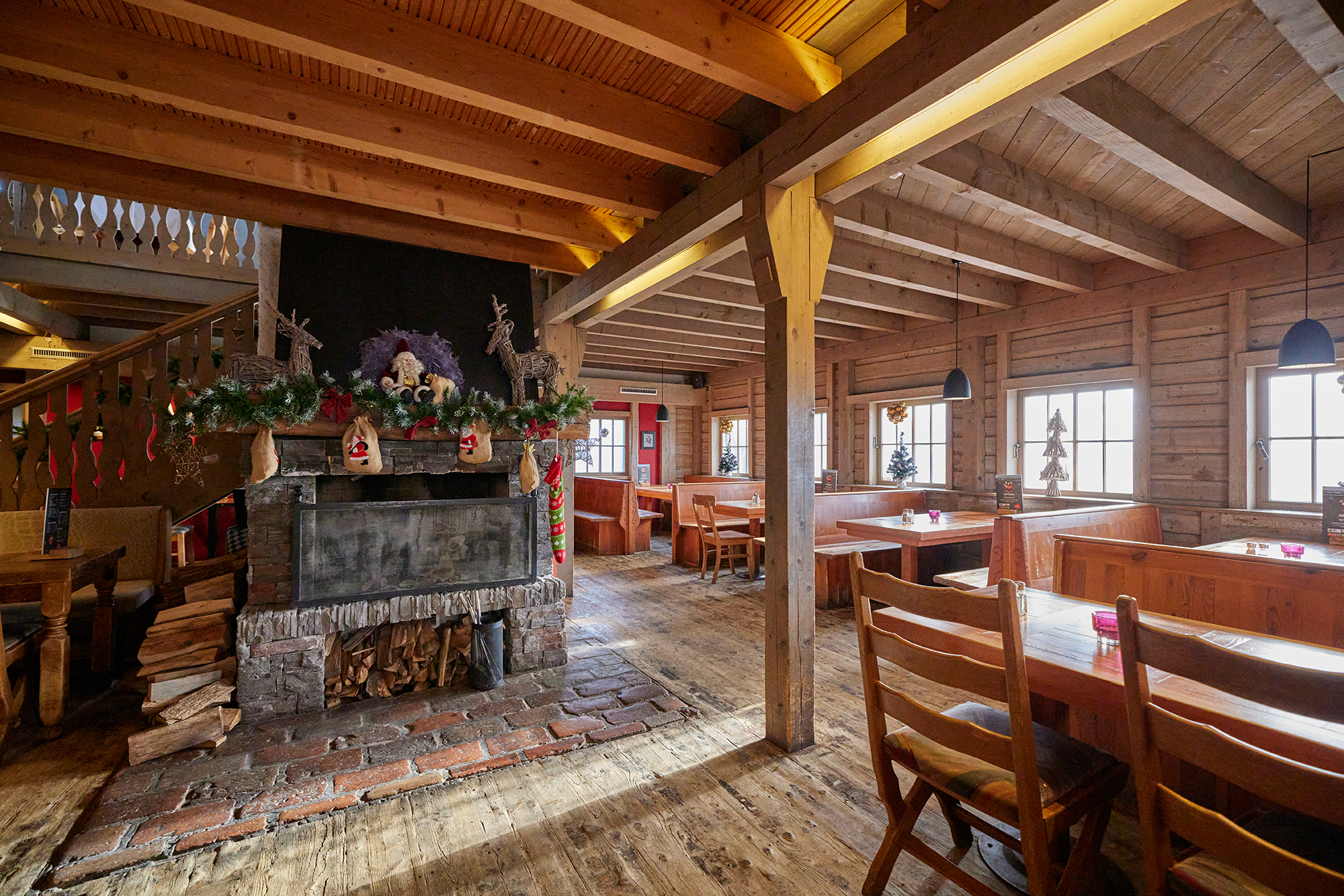 <p>Gemütliche, hölzerne Berghütte mit rustikalen Einrichtungen und weihnachtlichen Dekorationen.</p>