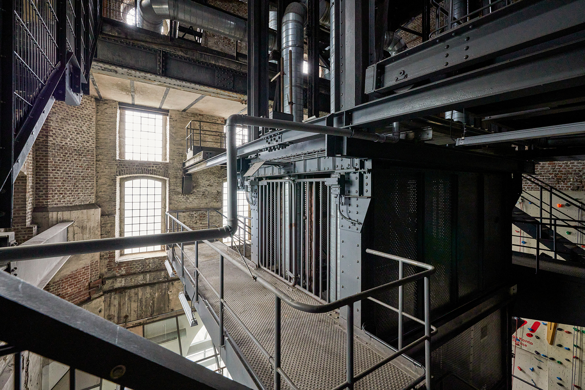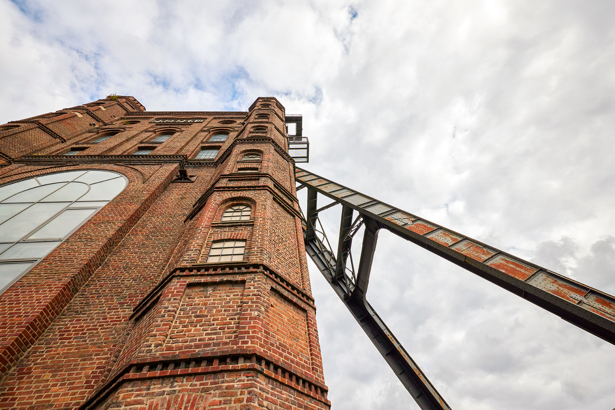 | Zeche Arenberg Fortsetzung, Bottrop | Quelle: Reinhold Budde · Lizenz: CC-BY-SA | Zeche Arenberg Fortsetzung, Bottrop: Backsteinbau der ehemaligen Zeche Arenberg Fortsetzung in Bottrop mit großen Rundbogenfenstern. |