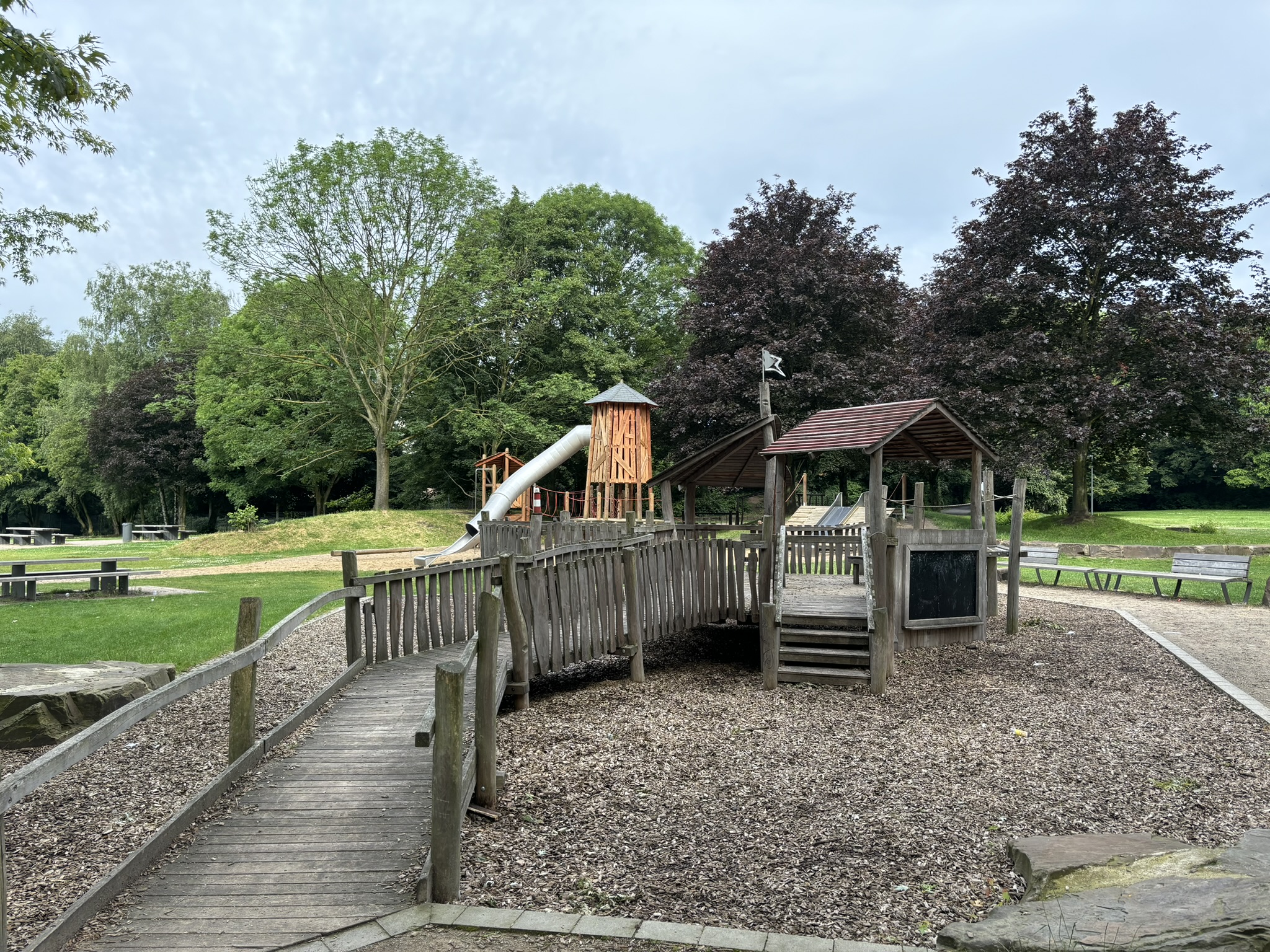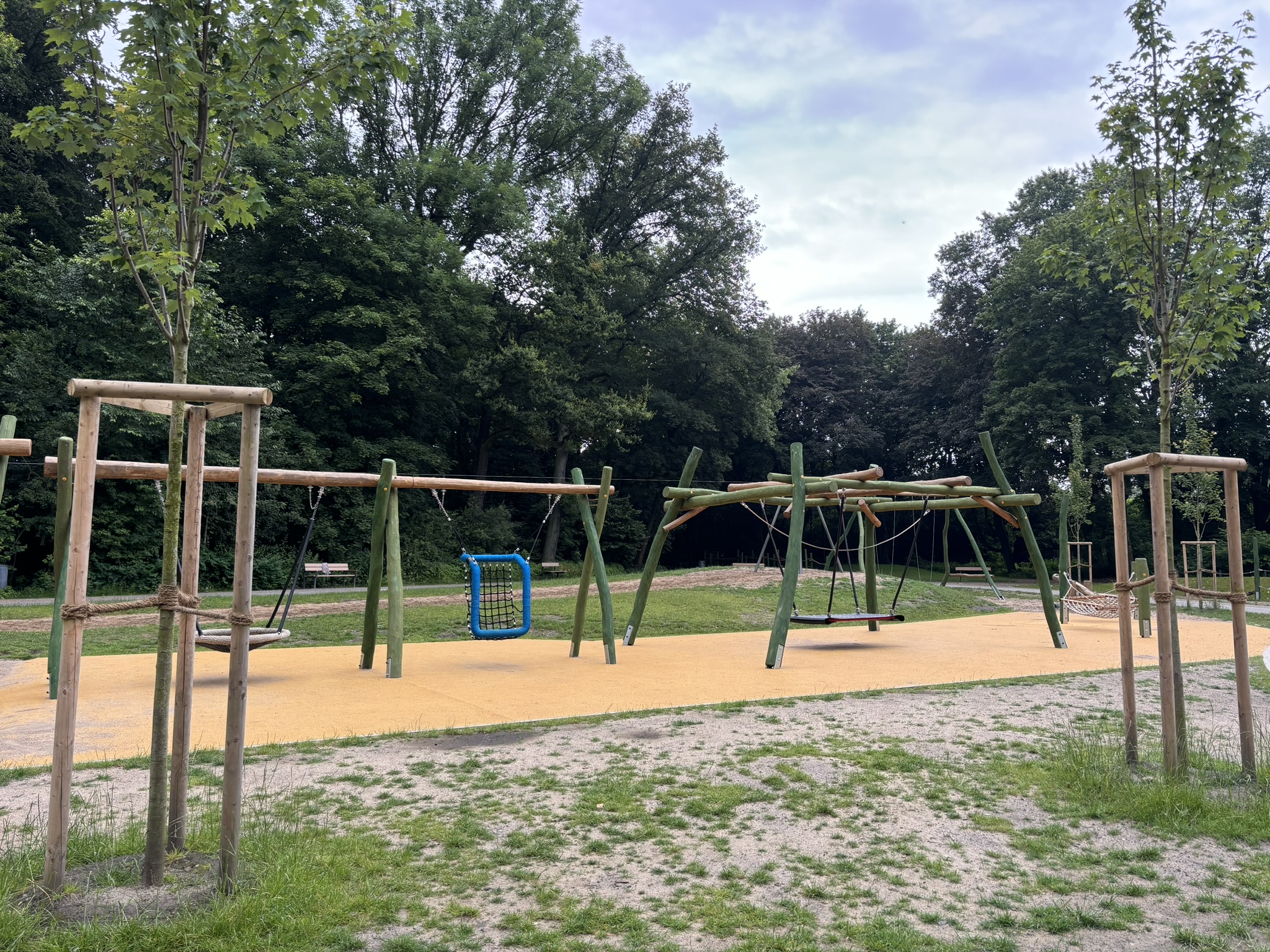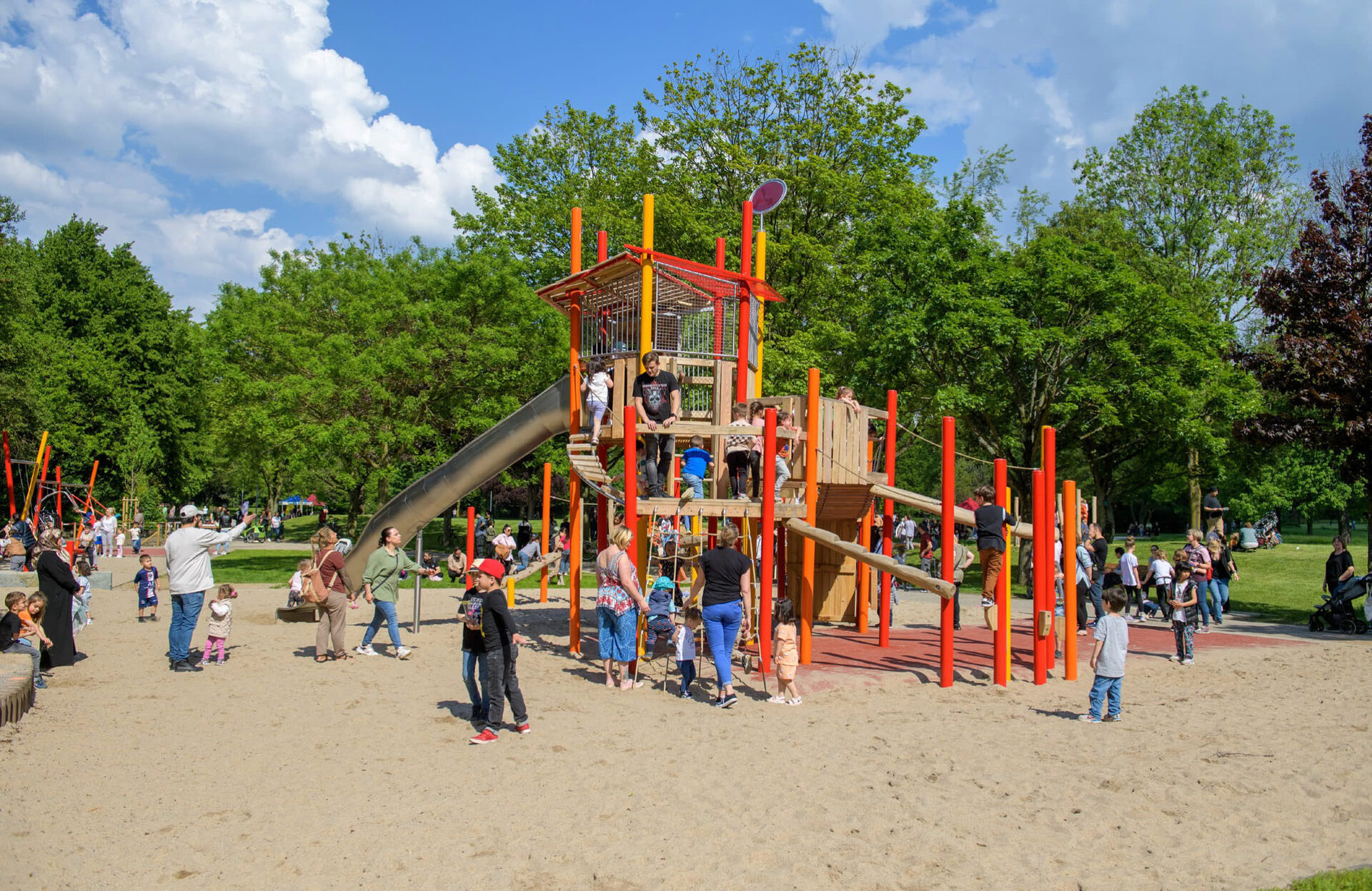 | Bottrop_NaturErlebnisparkWelheim.jpg | Quelle: Stadt Bottrop · Lizenz: CC-BY-SA | Bottrop_NaturErlebnisparkWelheim.jpg: Holzspielanlage mit Rutsche und Sandfläche im Natur- und Erlebnispark Welheim in Bottrop |