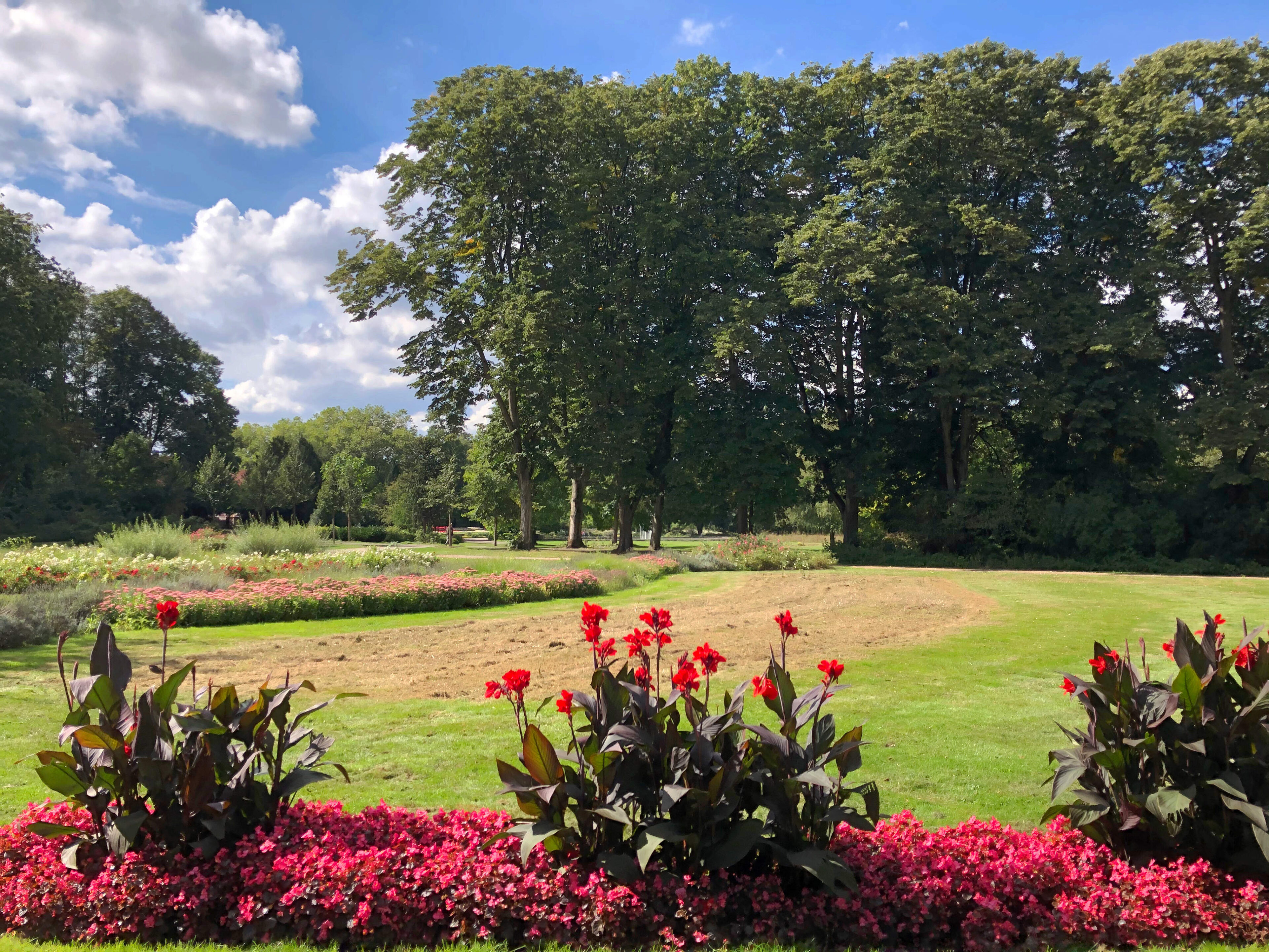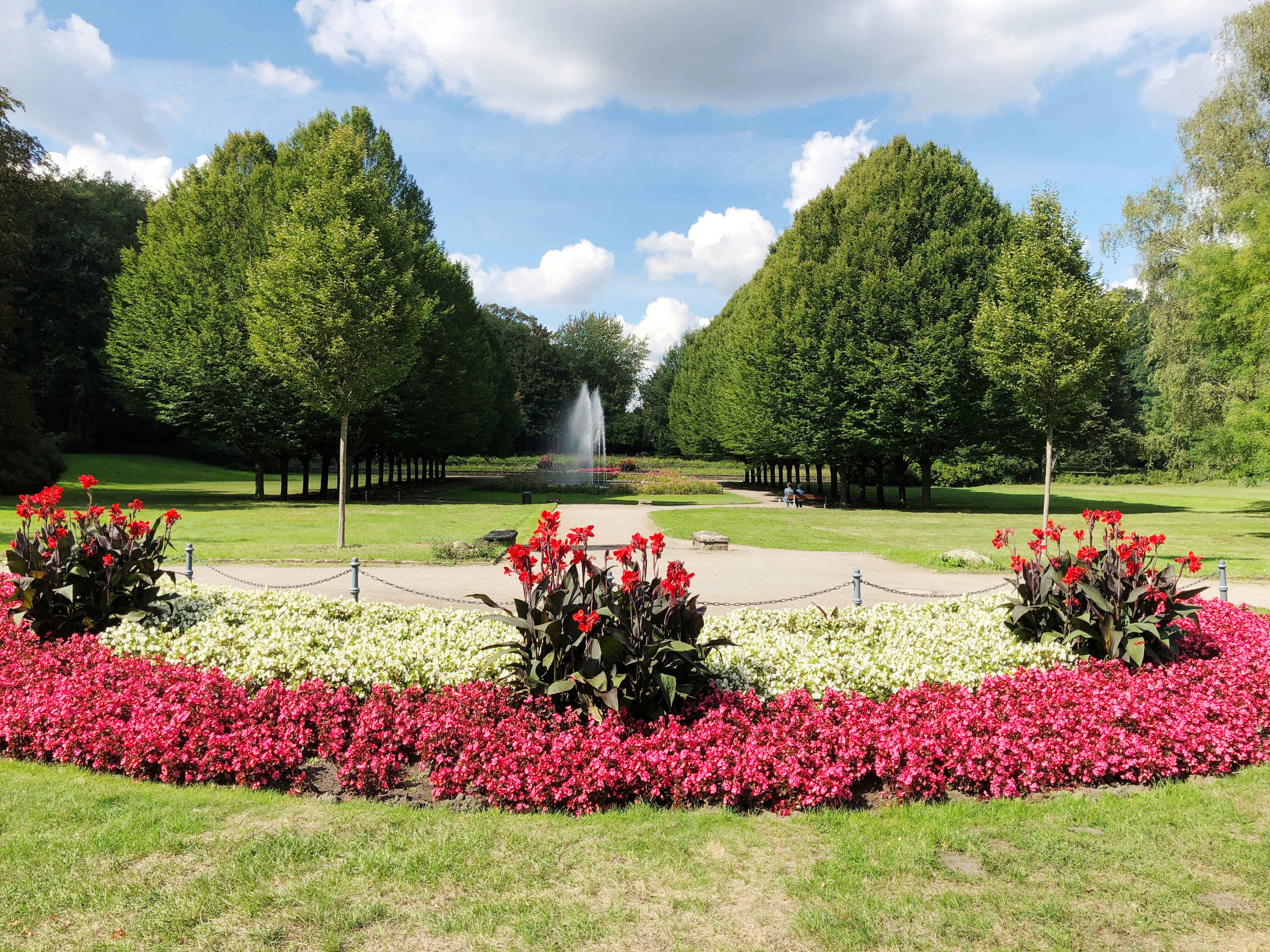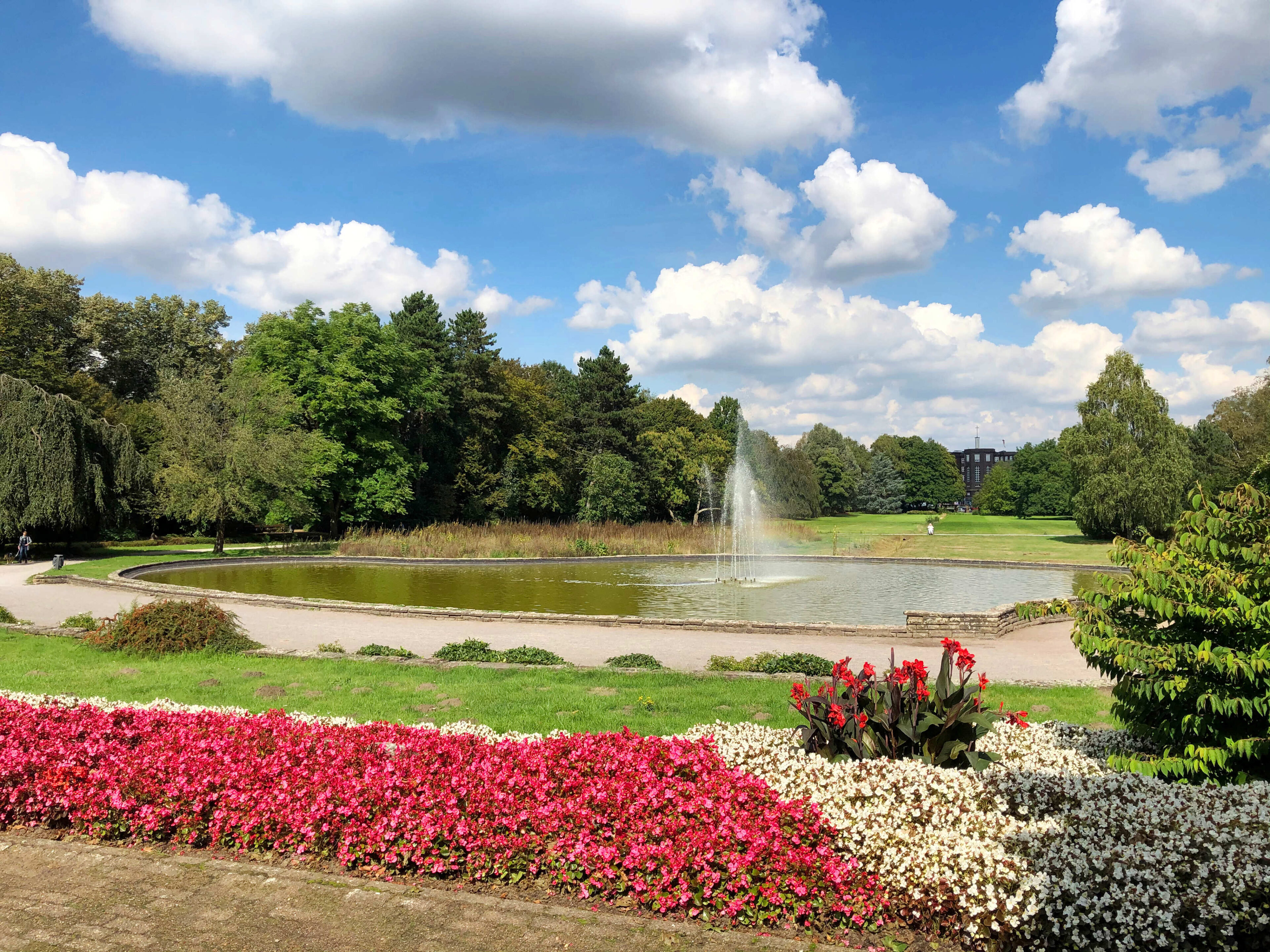 | Bernepark Bottrop | Quelle: OLFF APPOLDwww.olffappold.com, Ruhr Tourismus GmbH · Lizenz: CC-BY-SA | Bernepark Bottrop: <p>Ein runder Teich umsäumt von gepflegten Hecken und Bäumen in einer parkähnlichen Anlage.</p> |