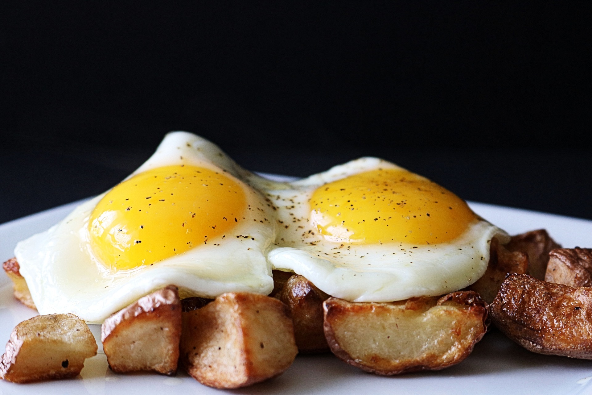 | Stockfoto Bratkartoffeln | Quelle: · Lizenz: CC-BY | Stockfoto Bratkartoffeln: Zwei Spiegeleier auf goldbraun gebratenen Kartoffelstücken, angerichtet auf weißem Teller. |